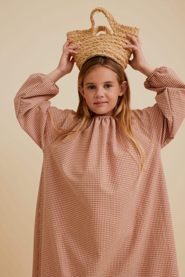 The maxi dress is made of cotton blend fabric with checks and has an airy silhouette with long, puffy sleeves. Wear this countryside-inspired dress for your special Summer moments.60% cotton, 40% Polyester/Machine washable.Proudly made in Lithuania.