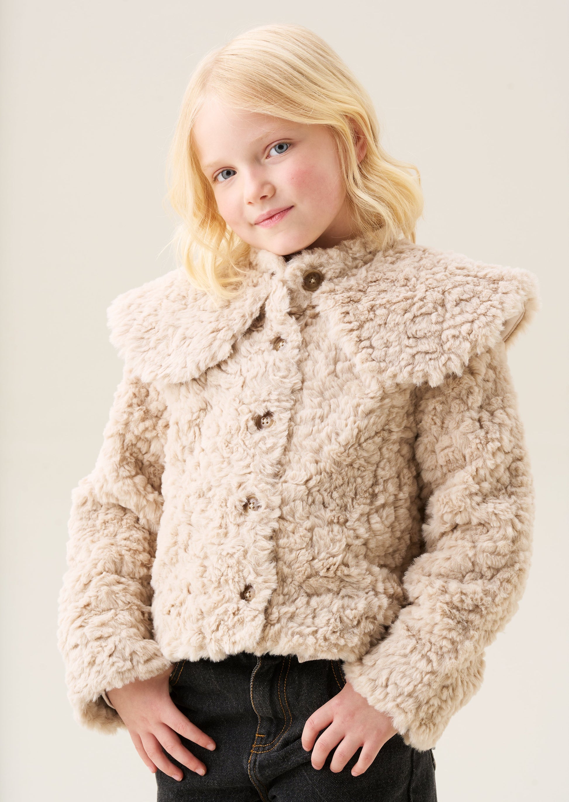 Girls Beige Cape Collar Faux Fur Coat | Angel & Rocket
