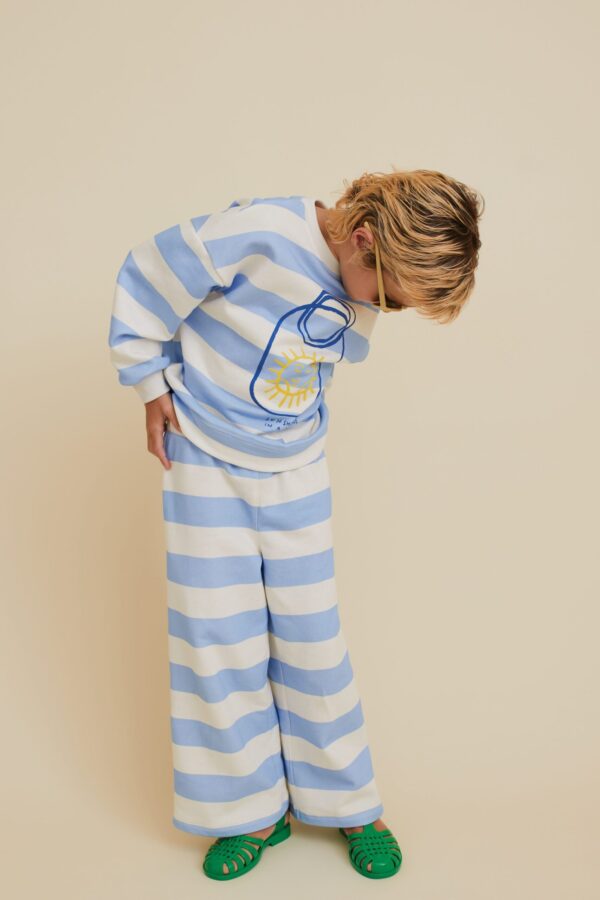 Trendy wide-leg pants are made of organic cotton and have an elastic waistband and large stripes. It is OXOX CLUB's interpretation of classic sweatpants, just a hippier edition. Wear these casual yet bold wide-leg pants as a statement piece, pairing them with an oversized sweatshirt or a tee. The bigger the stripes, the better.100% Organic Cotton/Machine washable.Proudly made in Lithuania.